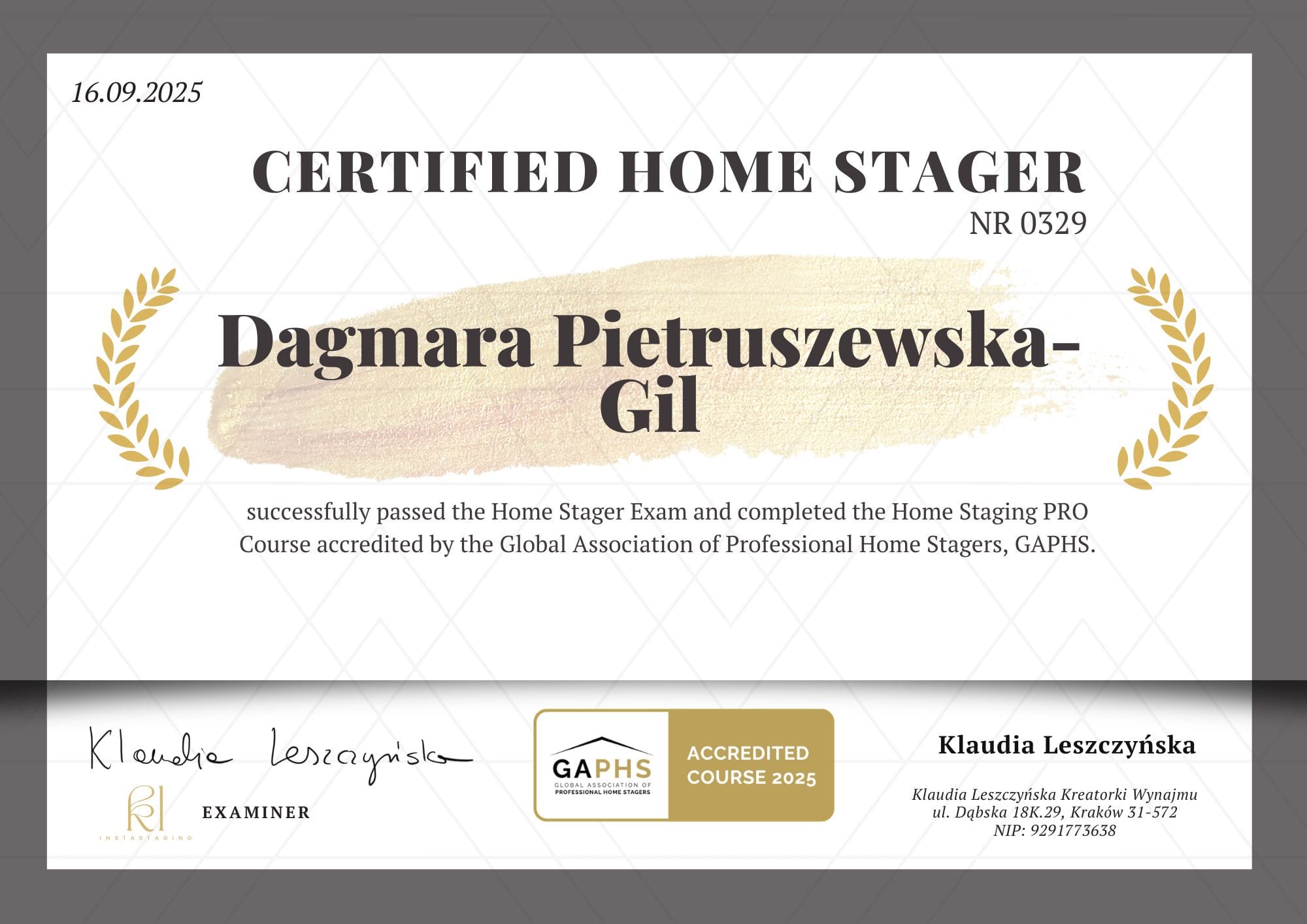 Home Stagerka z Globalną akredytacją GAPHSP. Z wykształcenia Manager Projektów i Ekonomistka. Miłośniczka wydobywania potencjału ukrytego we wnętrzach.